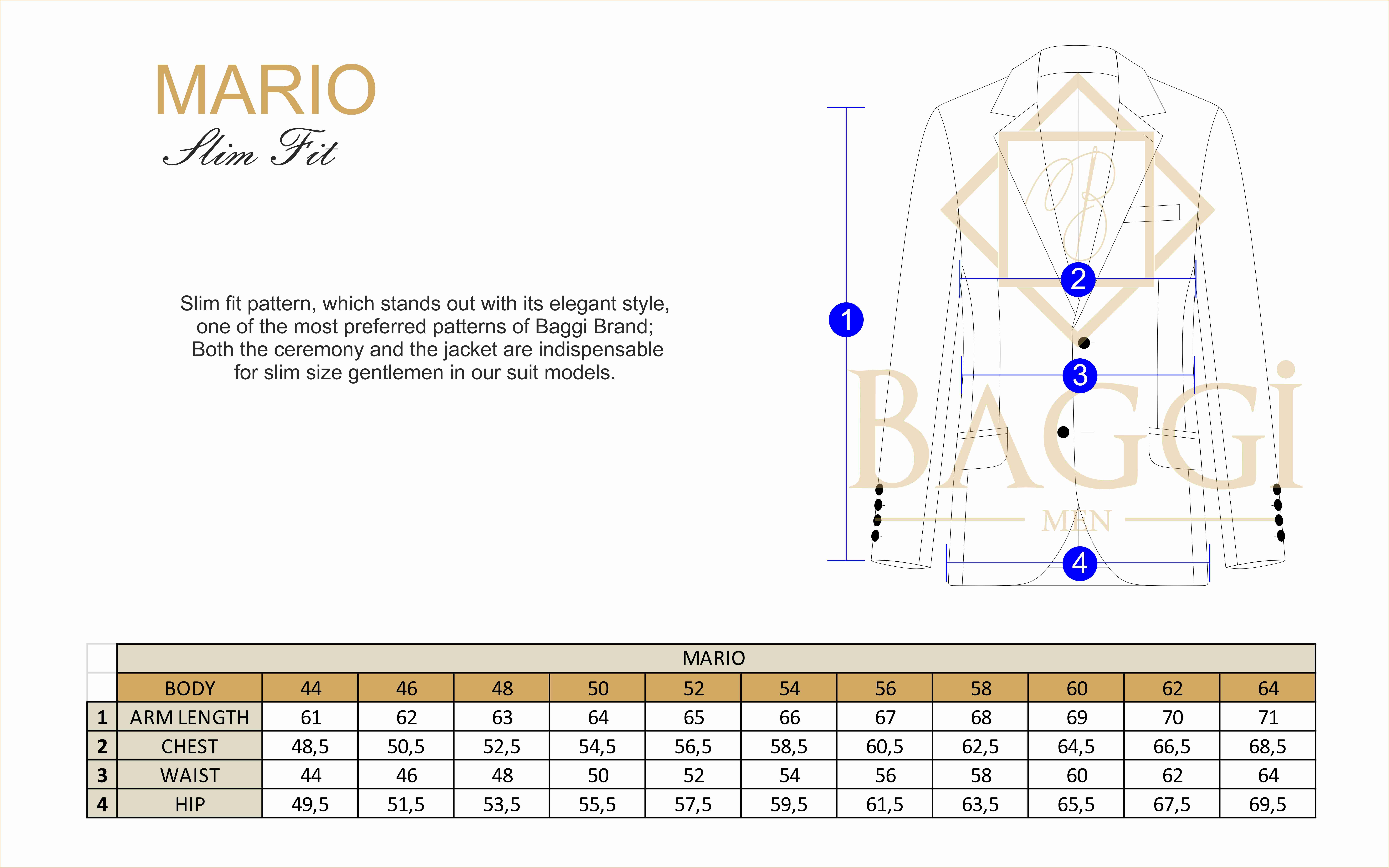 *Vest measurements organise according to Jacket measurements.